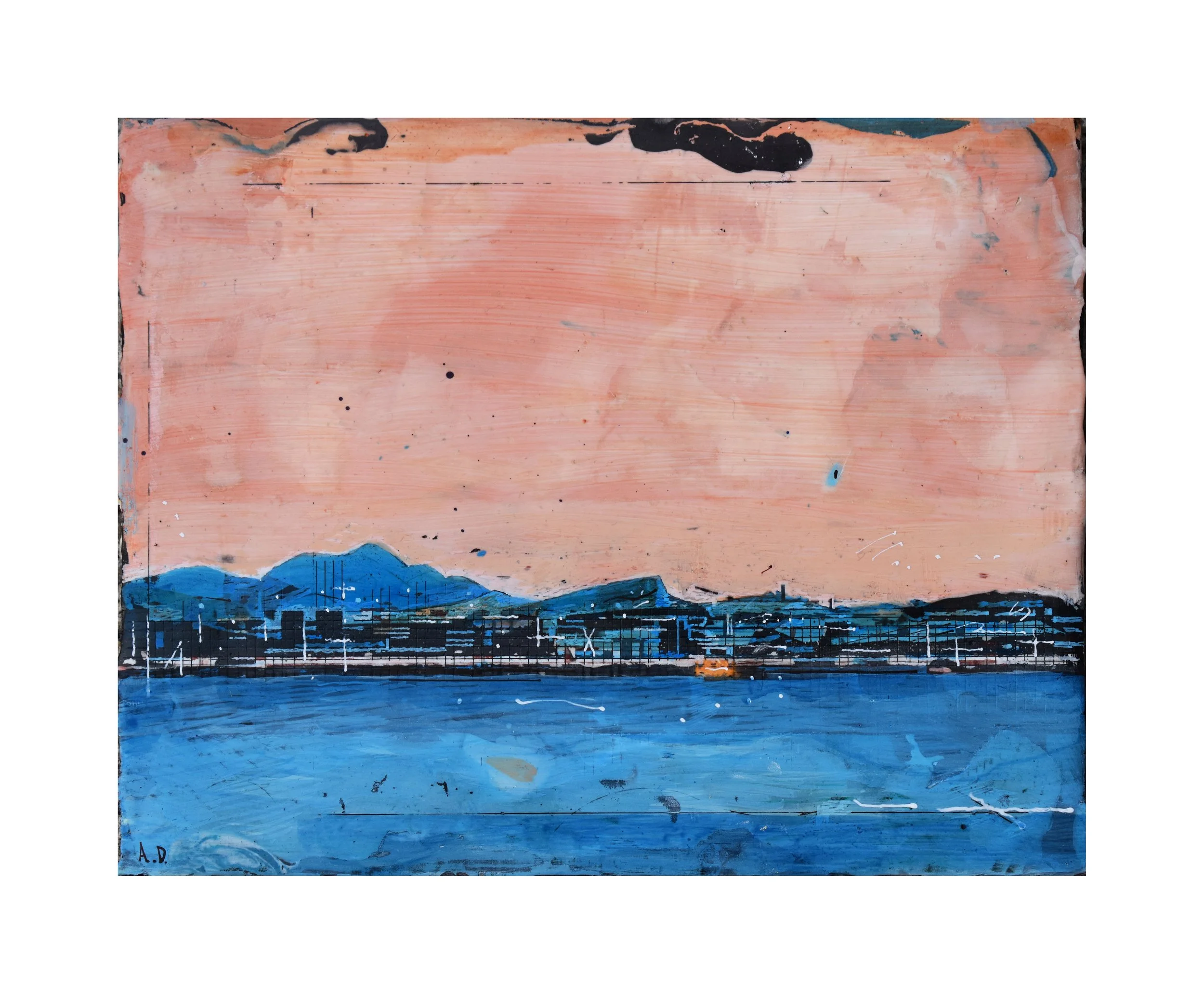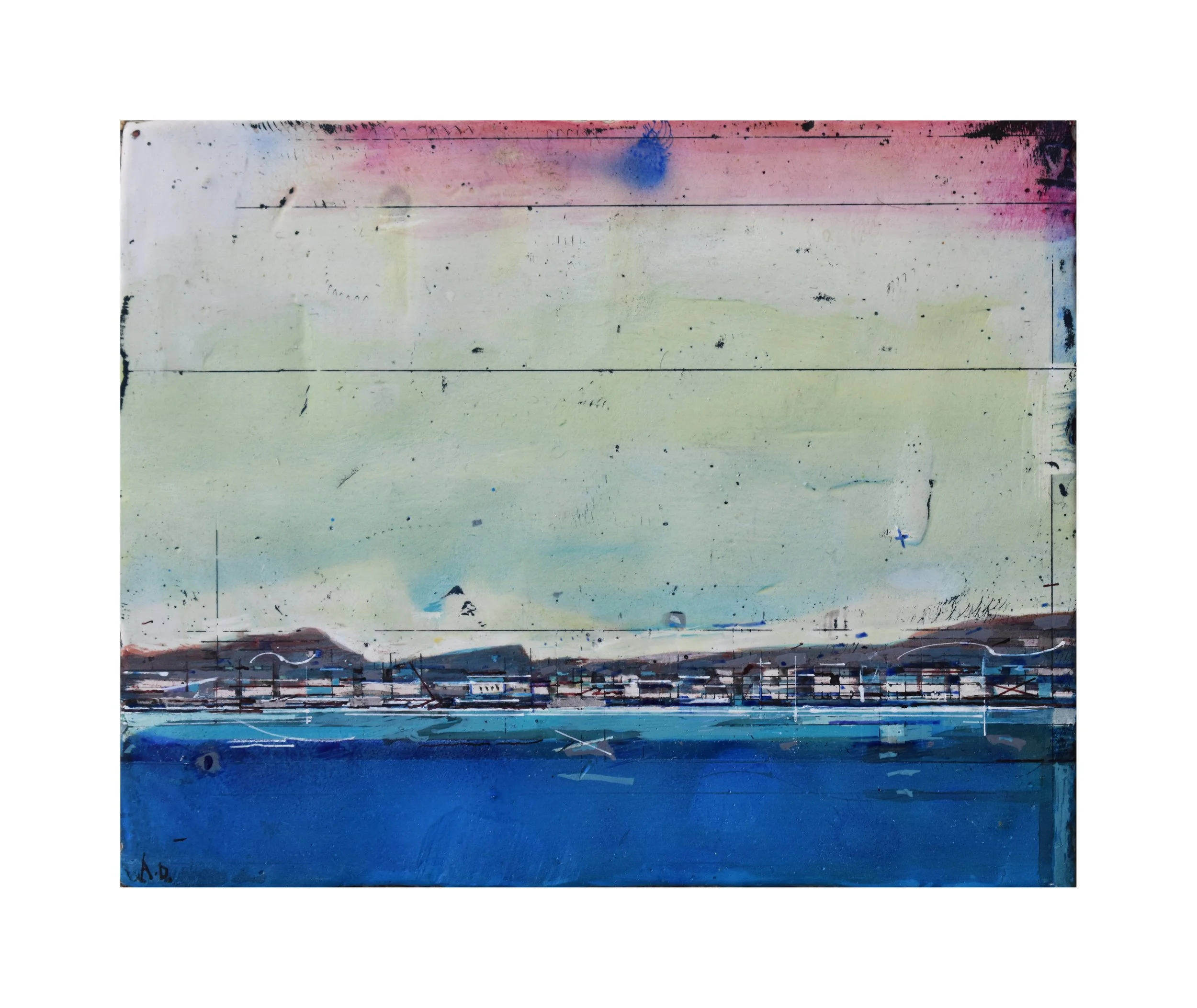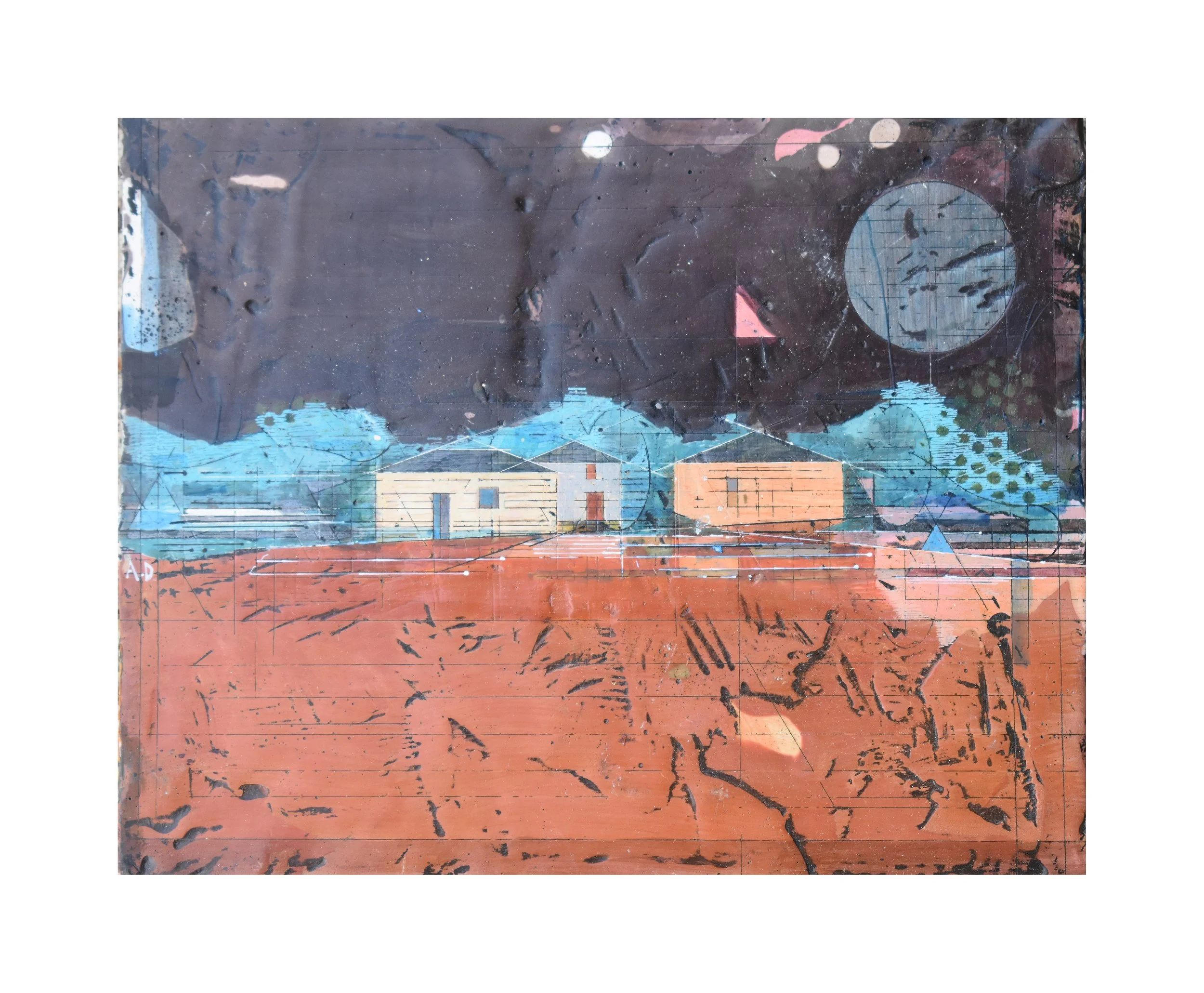 I can send detailed photos on request. Please note, the board thicknesses and materials vary. I leave a rough edge on the paintings which is part of the Jesmonite application process - because of this they are best suited floating in a box frame and do not necessarily need to be glazed.